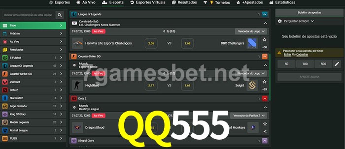 O QQ555 oferece uma grande seleção de opções de apostas em e-sports com probabilidades competitivas